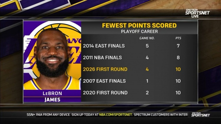 昆明配资最快的方法 今日生涯第3低!詹姆斯季后赛得分最少的5场球 14年东决G5仅7分