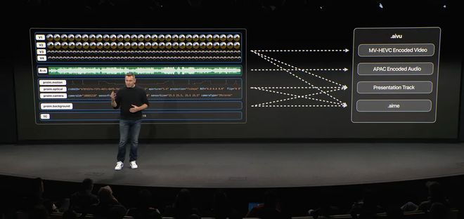 此外,苹果明确了 Apple 沉浸式视频格式的双重标准:一是用于专业后期制作、包含 RAW 数据的“生产格式”;二是经过高效压缩(MV-HEVC 编码)、用于流媒体分发的“交付格式”(.aivu),旨在平衡制作流程的灵活性与终端用户的观看体验。